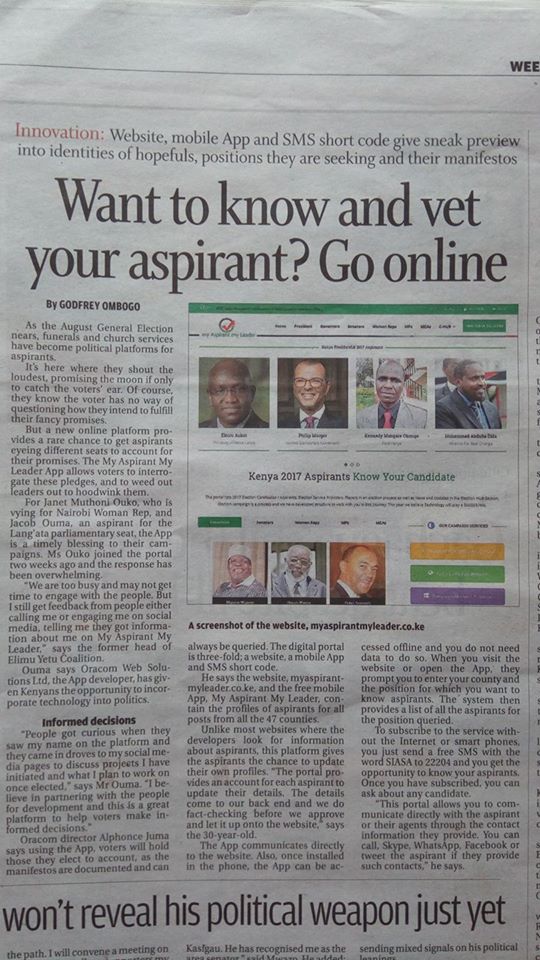 Standard Media Election Innovation of the Year Features My Leader Kenya App